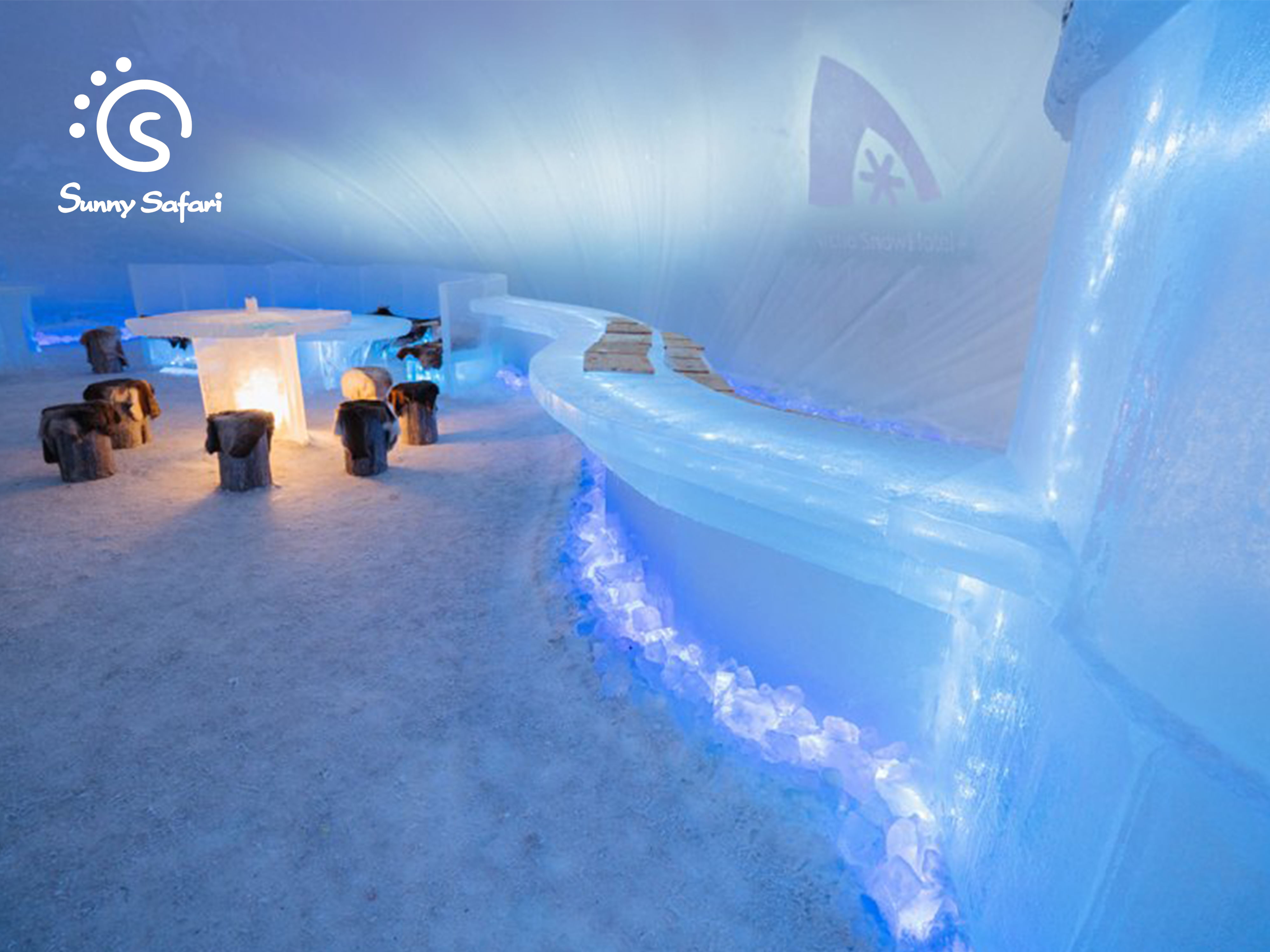 The last stop on this trip journey is to the Arctic Snow Hotel. You’re entitled to visit the entire hotel areas including rooms (Keep it family friendly please!), the ice bar, ice restaurant, and ice chapel – all created by snow and ice!