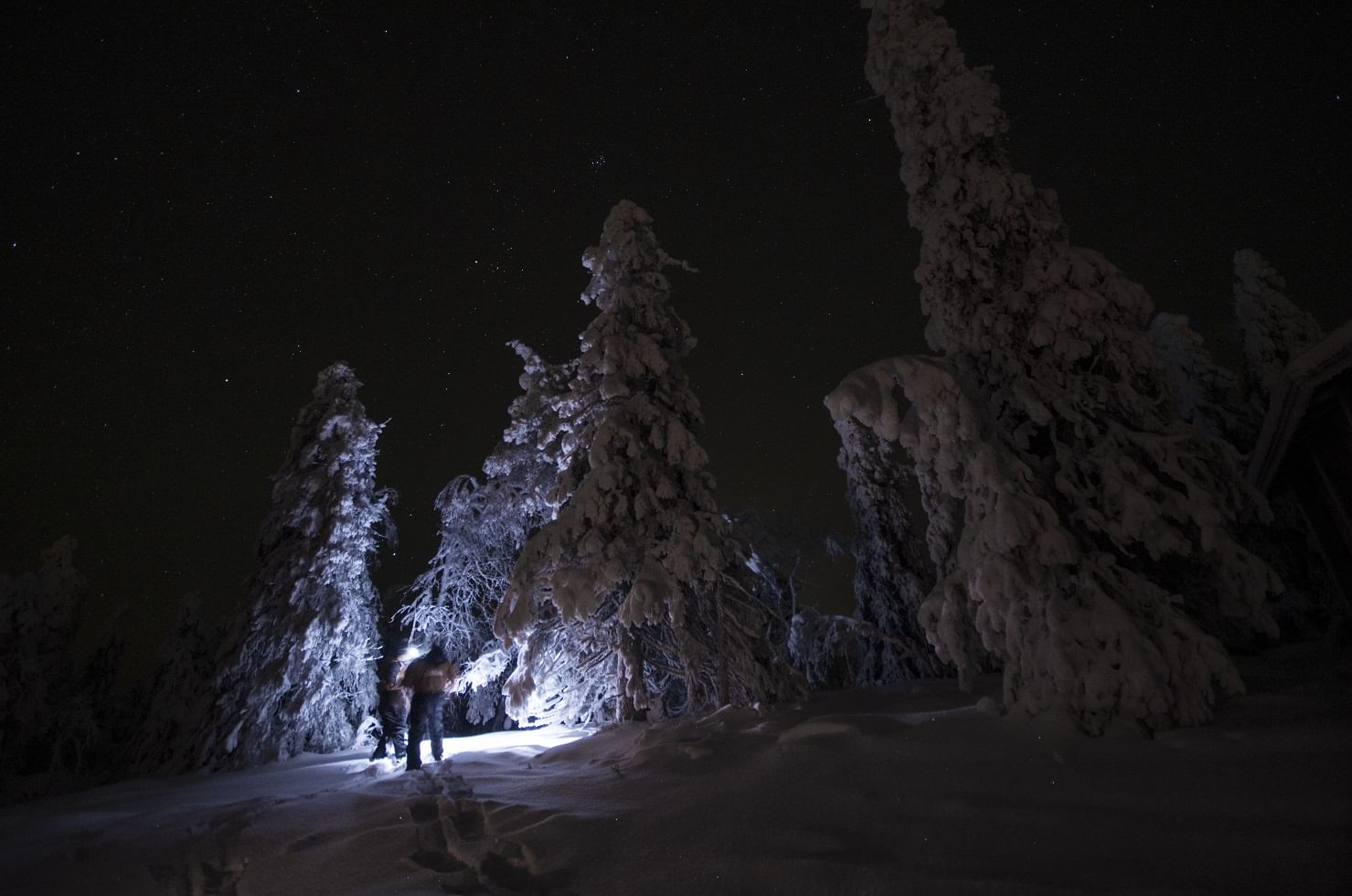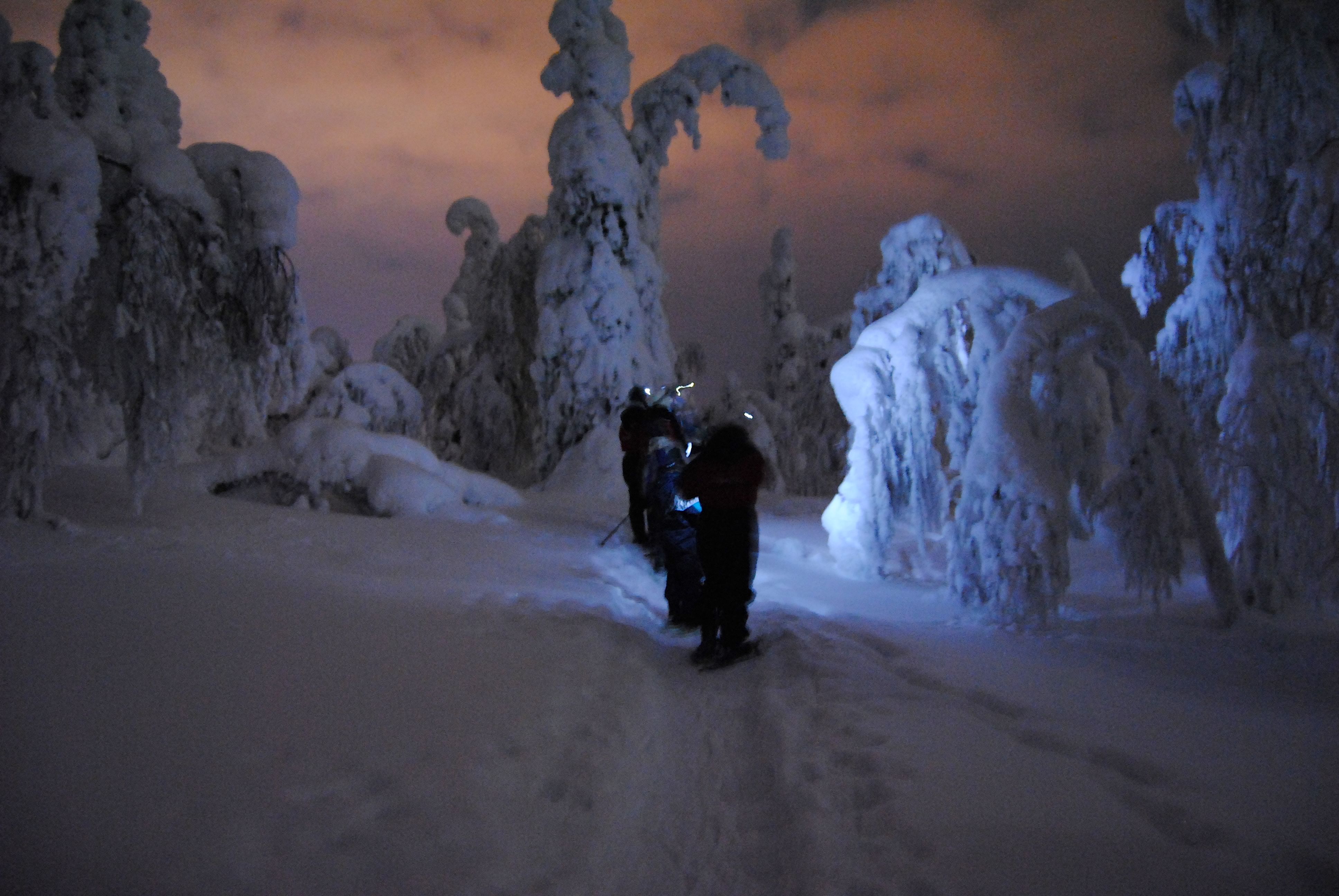 The best way to catch a glimpse of the northern lights is to head out into the dark forest with snowshoes. During our walk we will stop to admire the nature and learn about animal tracks in the snow. If the sky is clear, we will see the bright stars and with a little luck the colorful northern lights. Stopping at a fireplace we will have a hot drink and our guide will also tell us interesting stories about the arctic region.  The length of the walk is 2-5 km.